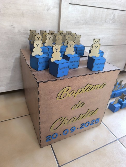 Créatrice d'objets événementiel , urne, contenants dragées, cadres, cadeaux Parrain Marraine, livre d'or ... Pour vos Baptême, Mariage, Anni